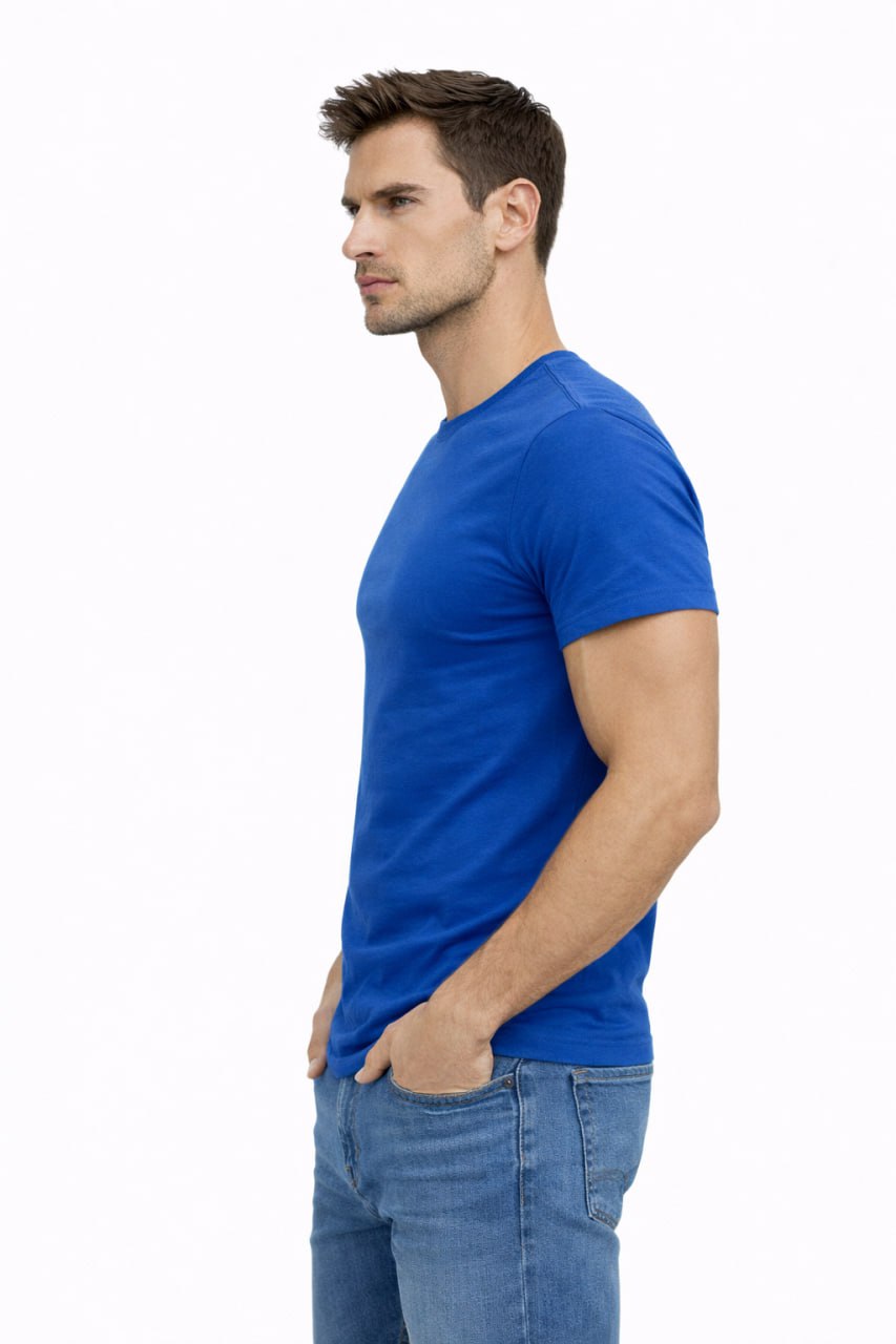 Эта стильная мужская приталенная футболка из кулирной глади (95% хлопка, 5% эластана) плотностью 180 г/м² подчеркнёт вашу фигуру, придавая образу спортивности и элегантности. Удобство ношения обеспечивает натуральный материал, который дышит и приятен телу. Идеальный базовый элемент гардероба для современного мужчины.
