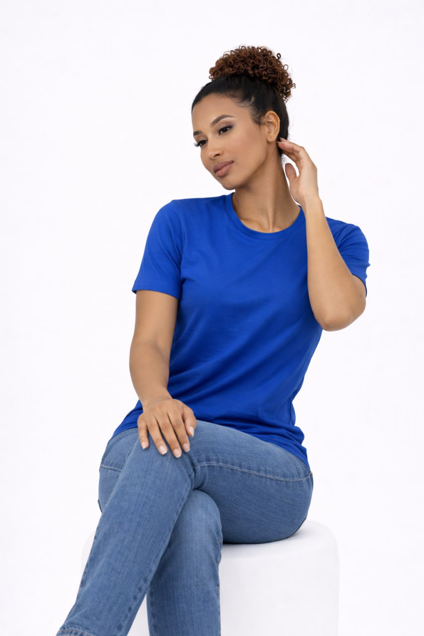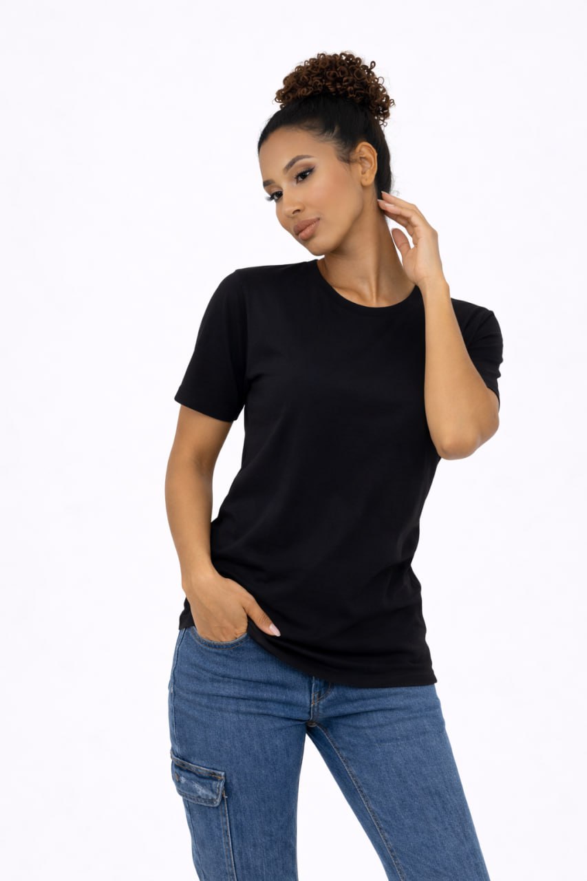 Классическая женская футболка из 100% хлопка (плотность 200 г/м²) — идеальный выбор комфорта и стиля! Дышащий материал позволяет коже дышать, предотвращая раздражение. Оптимальная посадка подчеркивает фигуру, добавляя уверенности каждому движению. Долго сохраняет свежий вид после множества стирок. Идеально подходит как под джинсы, так и под юбки — универсальный элемент гардероба каждой модницы!